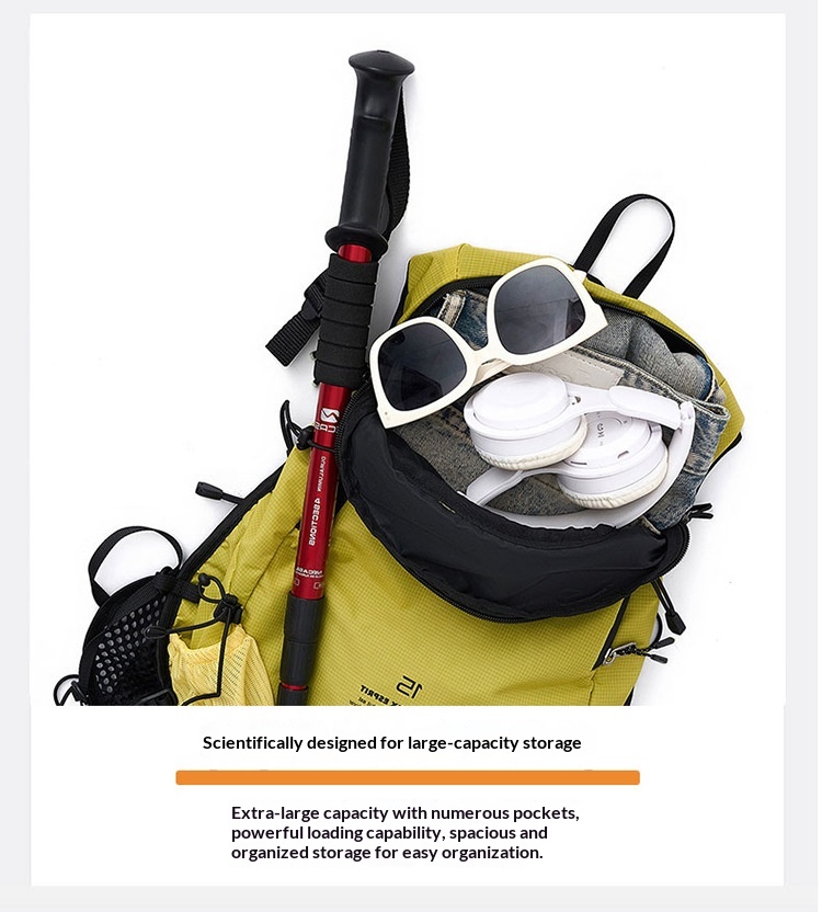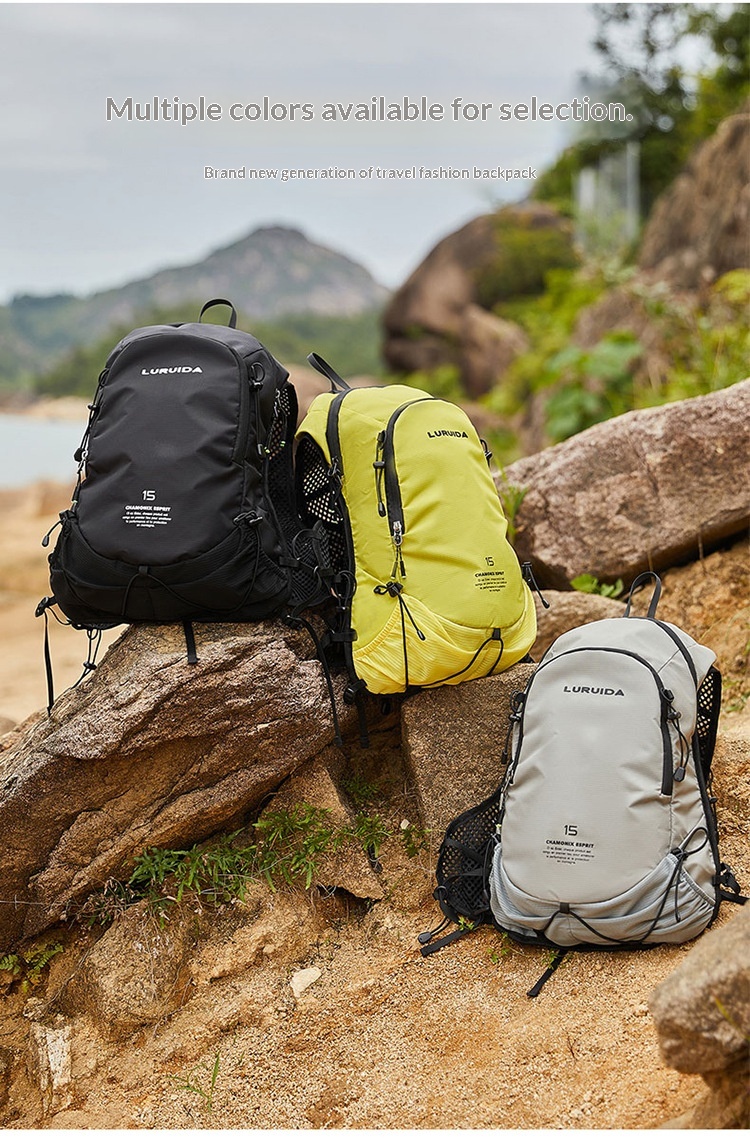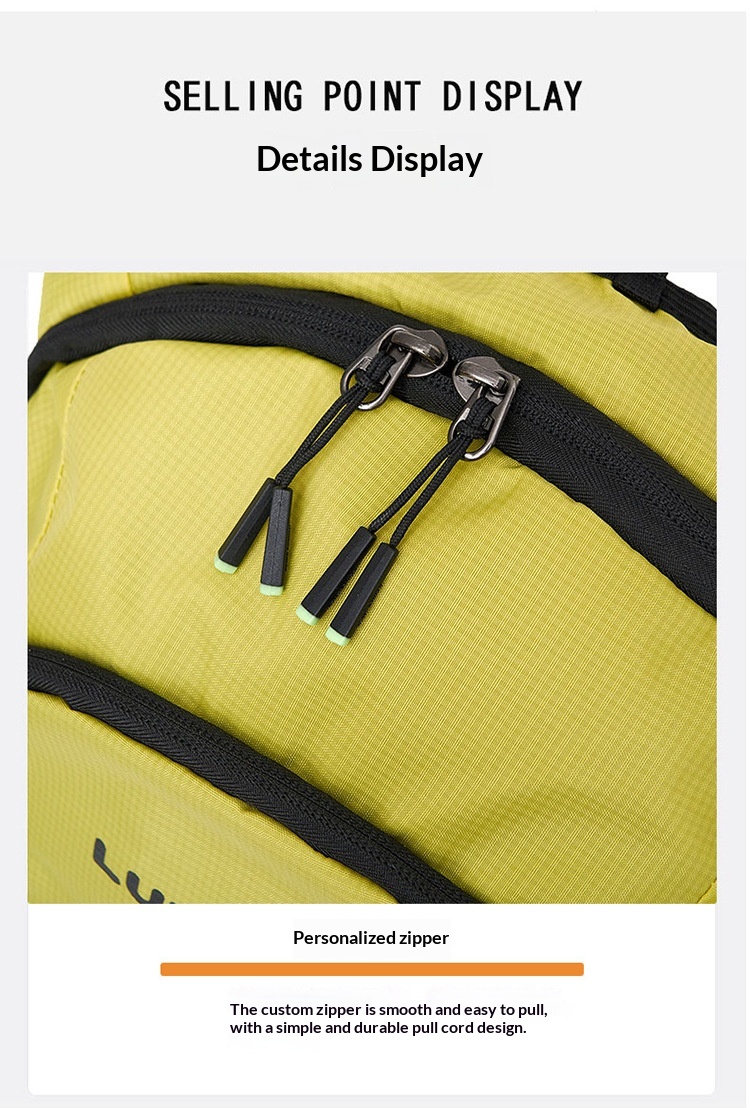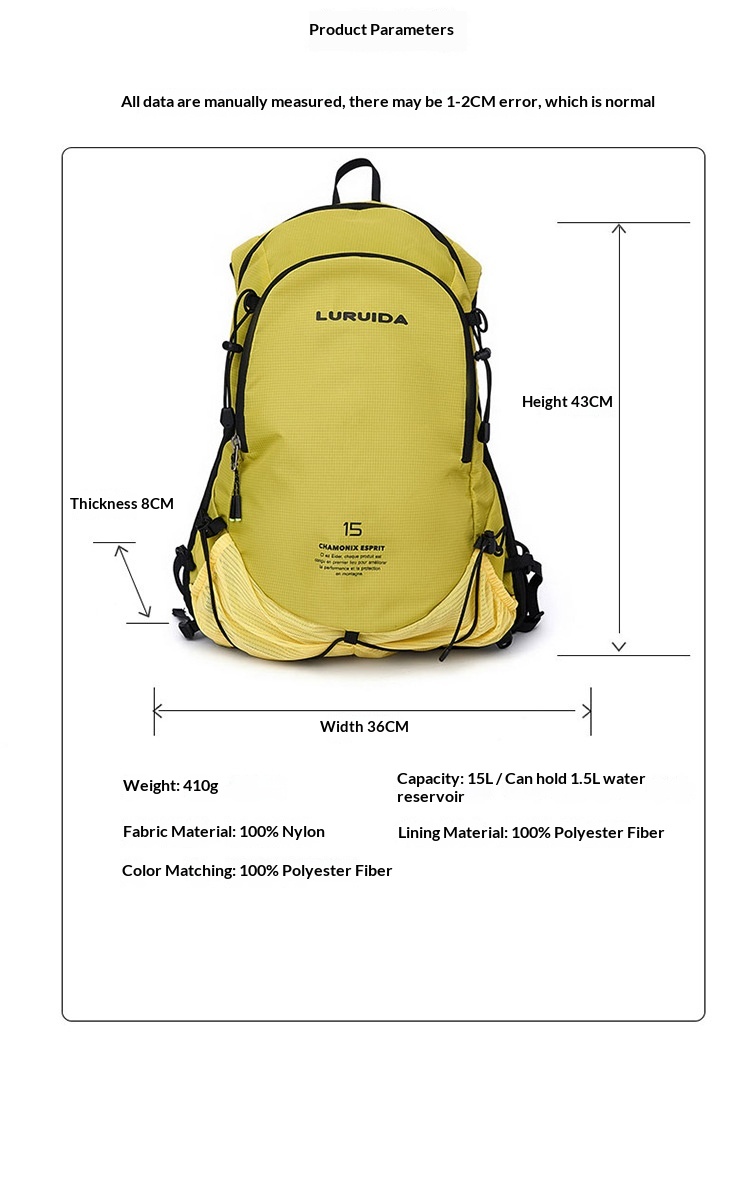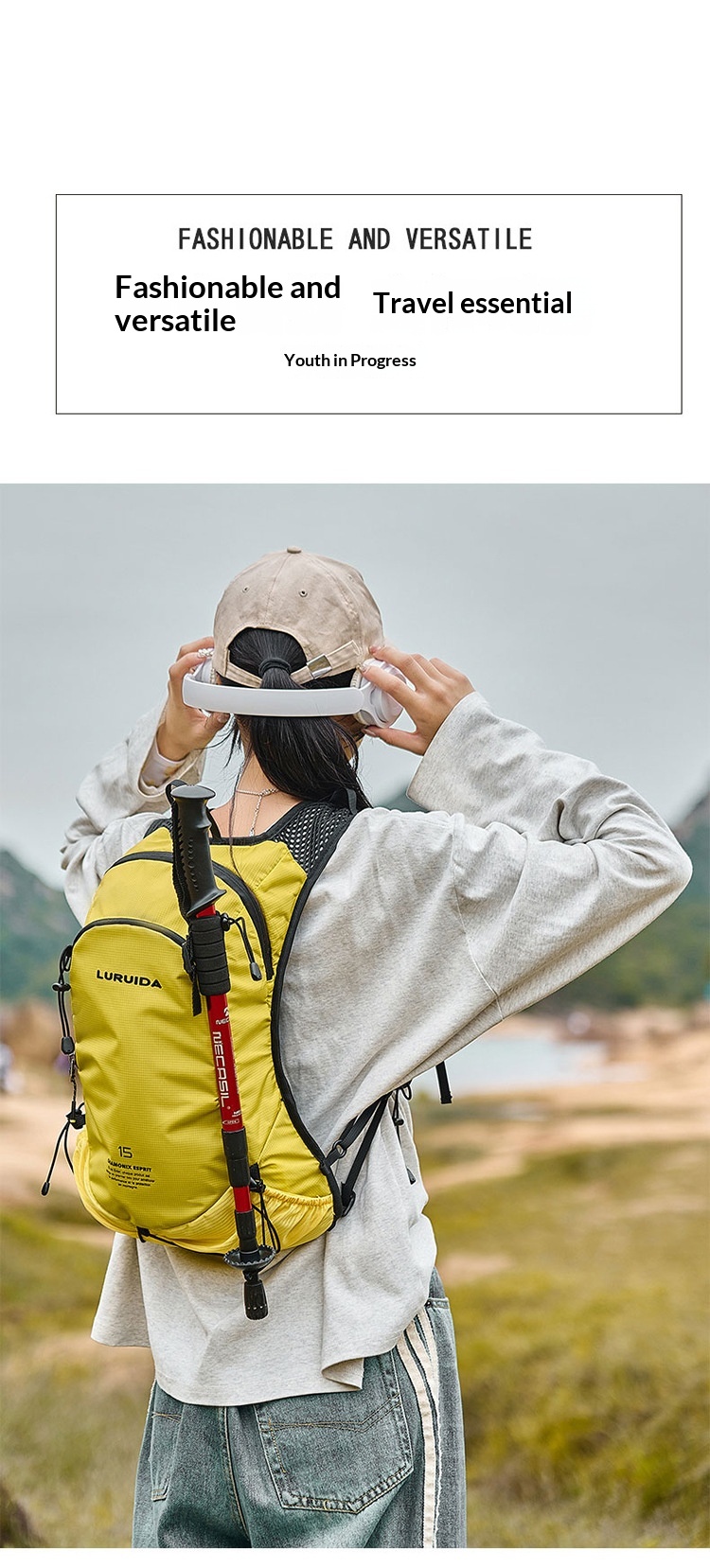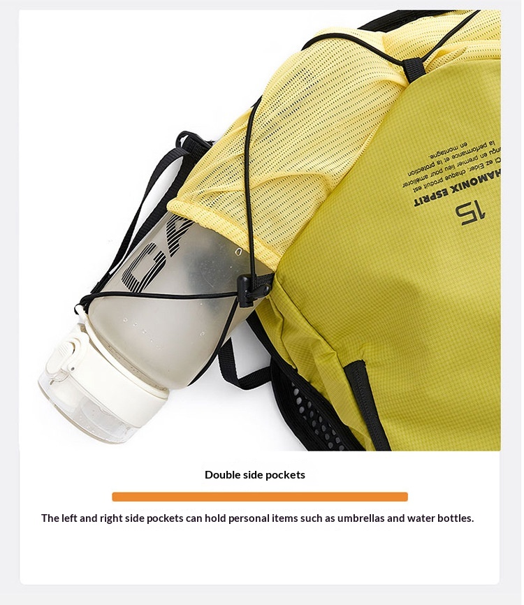 Product information: Pattern: Solid color Applicable Scenarios: Outdoor activities Colors: Yellow, black, light gray Suitable Gender: Unisex Product Features: Breathable, waterproof, ultra-lightweight, load-reducing Material: Nylon Backpack System: Curved shoulder straps Style: Casual travel Capacity: Under 20 liters